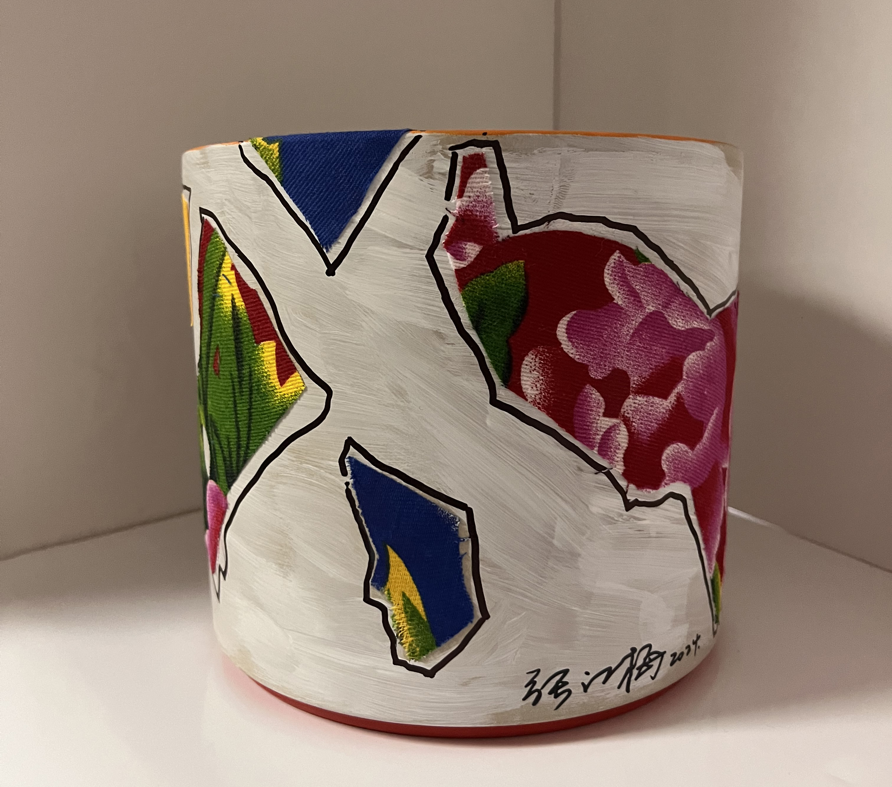 2) Zhang Hong Mei - Senza titolo (vaso in terracotta con applicazione di tessuto dipinto a mano, altezza 15 cm) - 2024