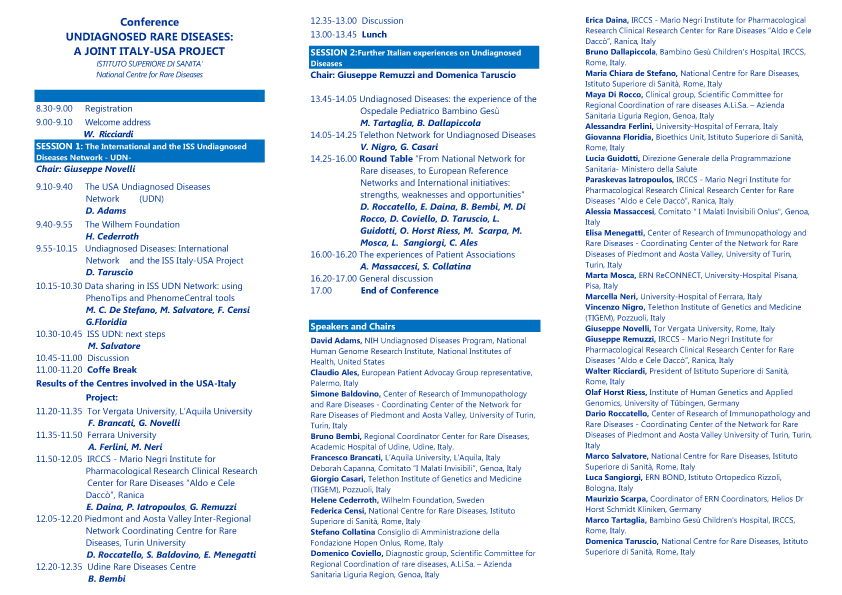 Conference "Undiagnosed Rare Diseases: A Joint Italy-USA Project"