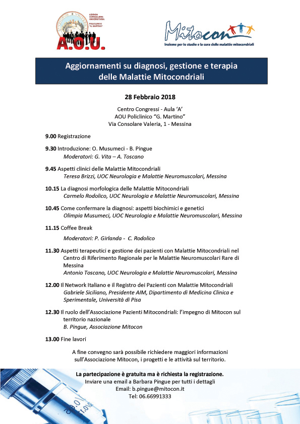 Per maggiori informazioni inviare una mail a Barbara Pingue (b.pingue@mitocon.it) - Tel. 06.66991333
