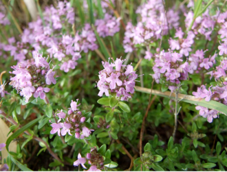 Il timo è un piccolo e folto cespuglio mediterraneo dalle foglie filiformi con minuscoli fiorellini color rosa pallido: da foglie e fiori si ricava un olio essenziale prezioso per le sue virtu e si ottengono anche gli ingredienti di numerose tisane della salute.